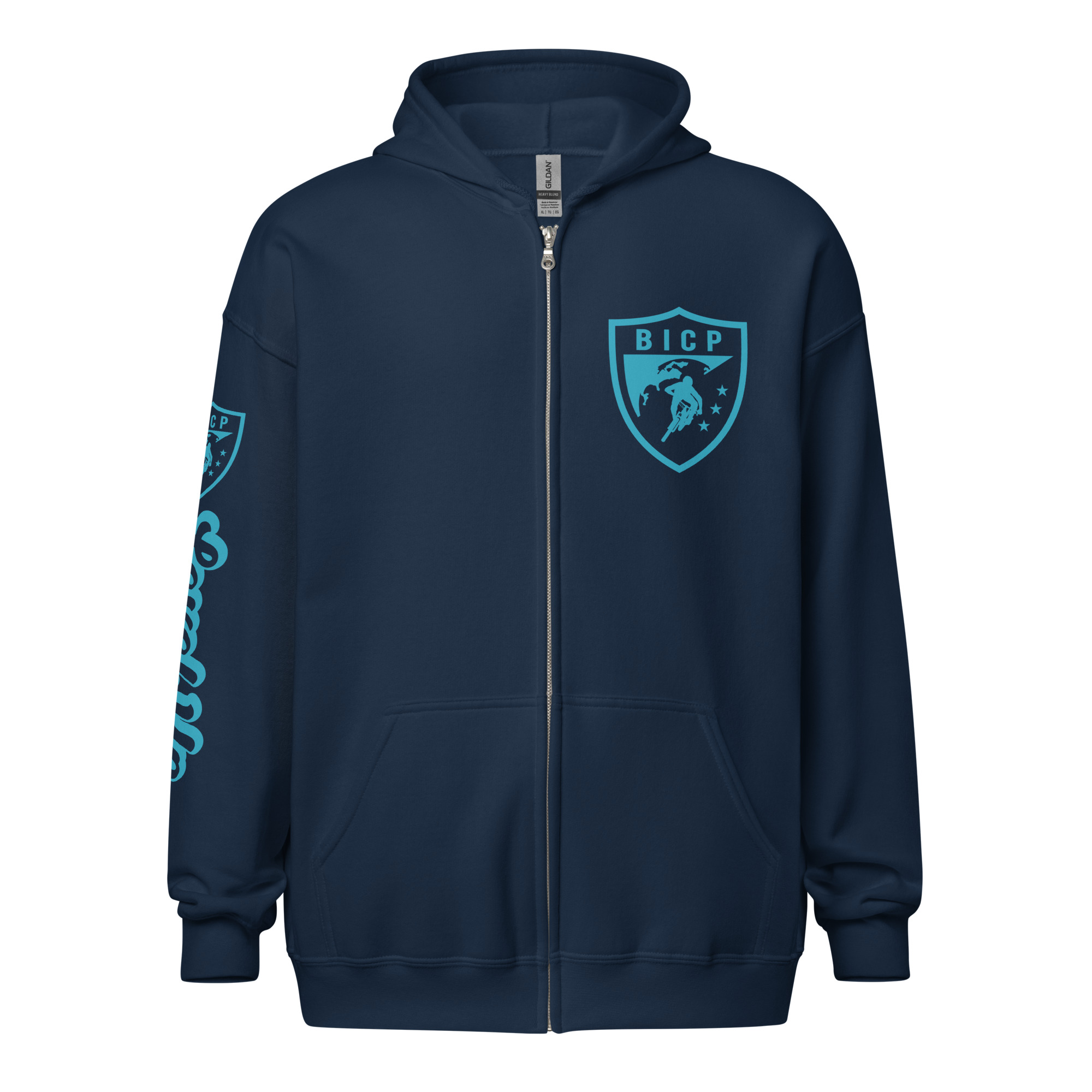 Designed with style and comfort in mind, this hoodie will quickly become your new favorite. It’s made from soft fleece inside and outside, with a sturdy metal zipper, convenient front pockets, and a hood with color-matched drawstrings.